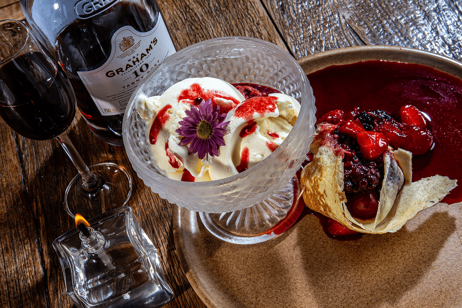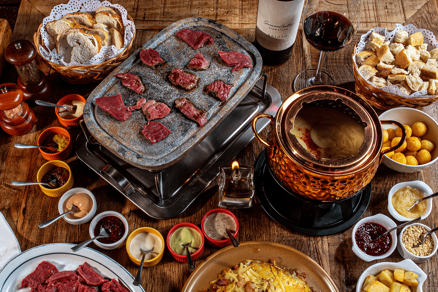 Menu inspirado na gastronomia franco-suíça aliada ao terroir da montanha, com uma seleção exclusiva de fondues e carta de vinhos selecionados em um ambiente perfeito para jantares românticos.